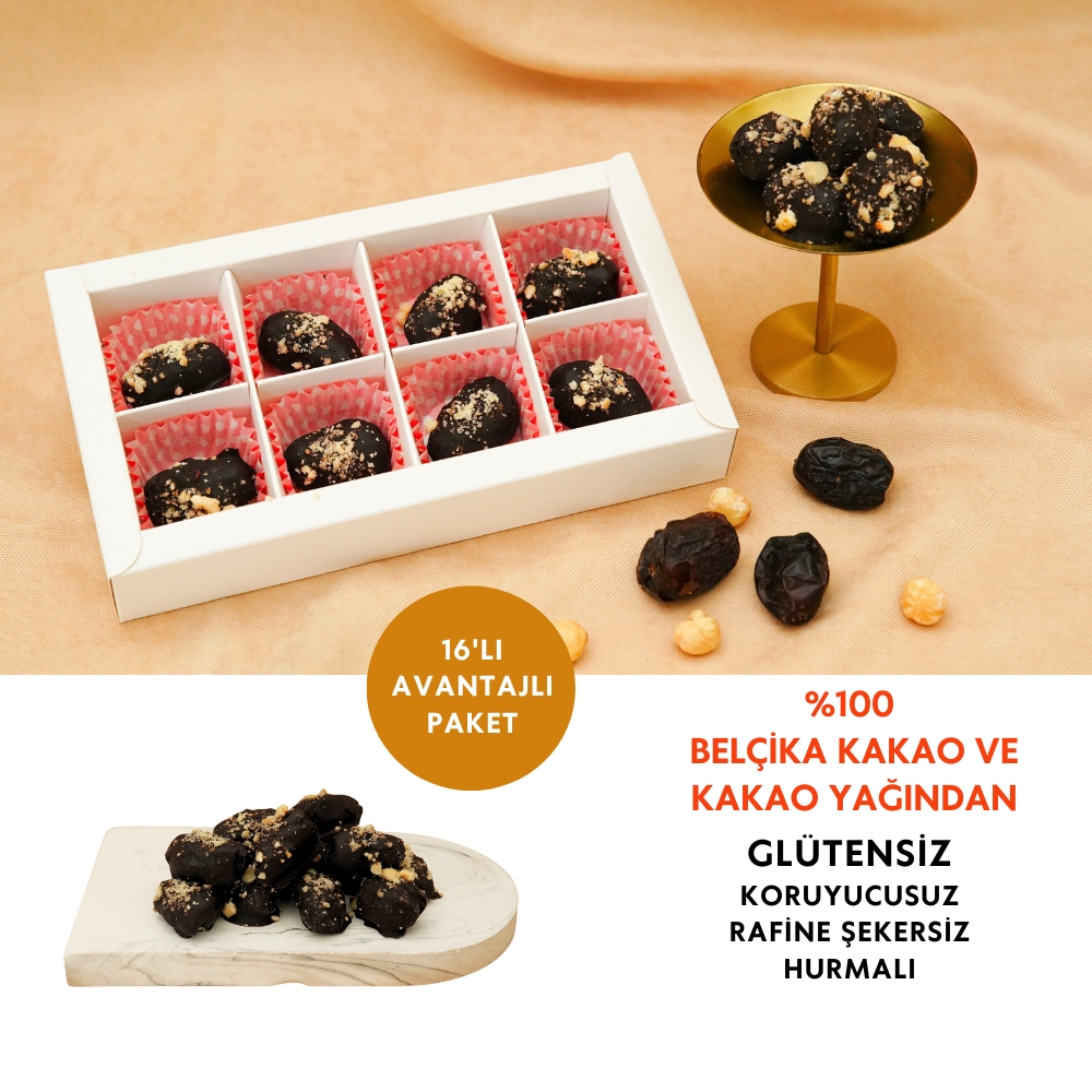 Belçika İmzası: Hurmalarımızı, kendi mutfağımızda hazırladığımız Belçika Çikolatası ile kaplıyoruz.